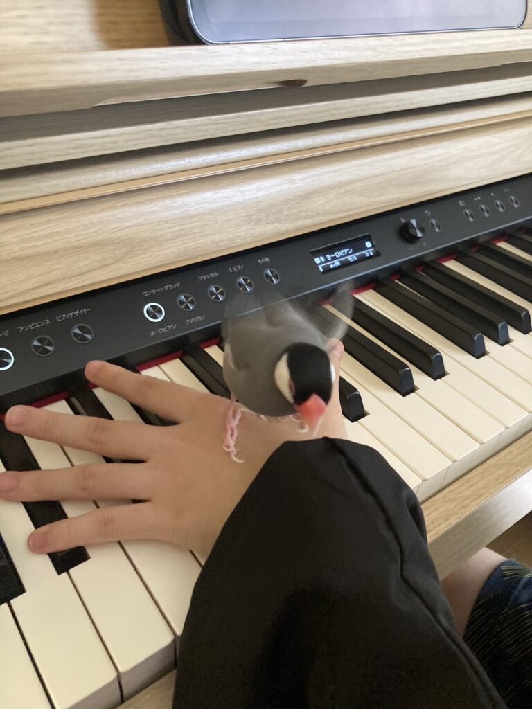 筆者はピアノを弾かないので、ただただ見ていてかわいいのですが、弾いている子どもは集中できないので、ぶんちゃんを放鳥した人に怒ることも…
