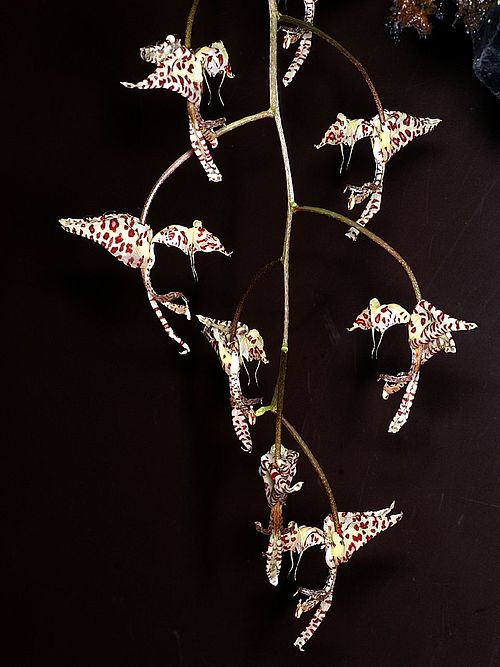 ちなみに、「ティビキニス」という種名はラテン語で「笛吹き」を意味し、現地の人々がこのランの空洞になった偽茎を笛などの楽器として利用していたことに由来するとも伝えられています。自然が生み出すユニークな造形が、人々の生活や文化にも影響を与えていたとは、なんともロマンがありますね。