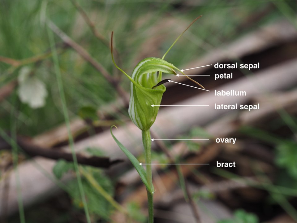 オーストラリアに自生するプテロスティリス属 (Pterostylis) のラン、通称「グリーンフッド」なども、非常に興味深い可動式の罠を持っています。これらのランは、キノコバエの仲間を化学的な誘引物質でおびき寄せます。