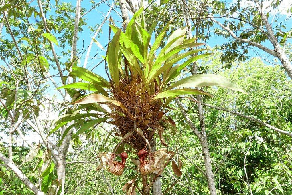 ランは、アリたちが集めたこれらの有機物が時間をかけて分解されることで生じる栄養分を、偽茎の内側から直接吸収することができるのです。栄養の乏しい熱帯の樹の上という厳しい環境で生きるランにとって、これは非常に効率的で賢い栄養獲得術といえるでしょう。