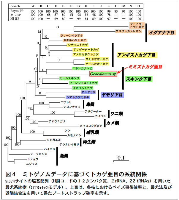 出典:名古屋大学『ミトゲノム解析によるトカゲ類の高次系統関係と分岐年代の解明 熊澤慶伯】
