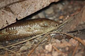 アシナシイモリの仲間には、光の届かない地下の世界に適応するため、手足だけでなく眼の機能さえも捨て去ったものもいます。硬い頭蓋骨で土を掘り進み、ミミズのような体で巧みに地中を移動します。