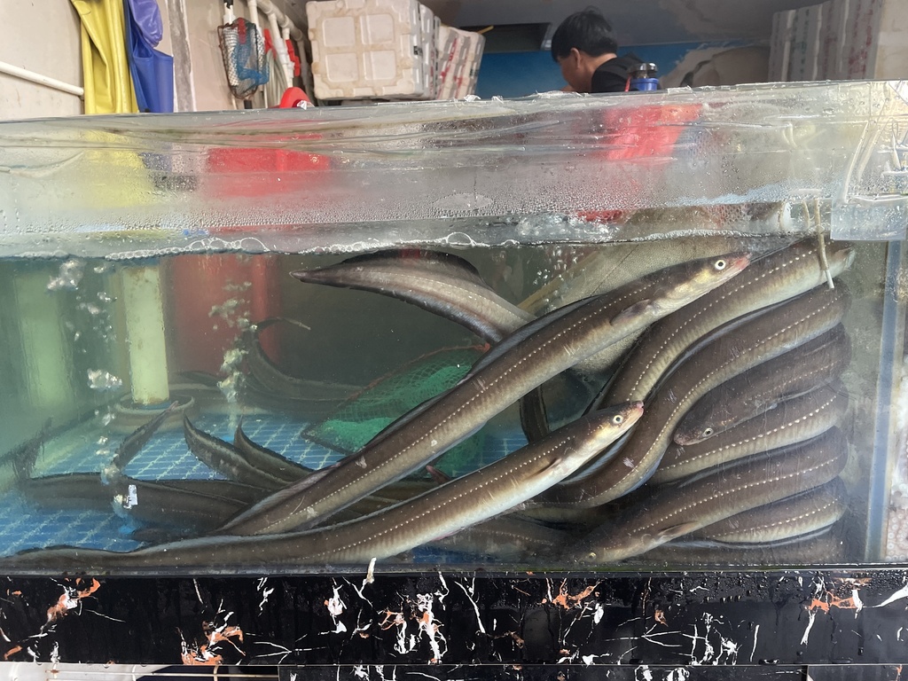 小型の軟骨性鰭条が多数並び、細長い体をしなやかに曲げる。