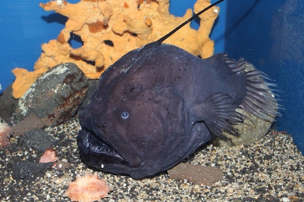 背ビレの第1棘条が、獲物をおびき寄せるための釣竿状の誘引突起(エスカ)に変化している。
