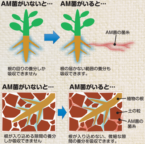 一方、菌従属栄養植物は、菌類(特に菌根菌というキノコやカビの仲間)を仲介役として、間接的に他の植物が作った栄養を得ています。菌根菌は本来、光合成を行う植物と共生関係を結び、その植物から炭水化物をもらう代わりに、土壌から吸収した水分やミネラルを植物に提供します。