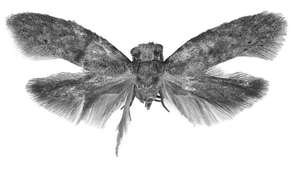 ❄️ Binburrum articuno(フリーザー) ー 半楕円形の鞘翅(前翅)に数百個の黒斑が散りばめられ、黄色い脚と青い複眼を持つ稀少種です。この複眼の色合いと透明な後翅の特徴が、ポケモンの伝説の氷の鳥フリーザーのイメージと重なることから、2020年に命名されました。