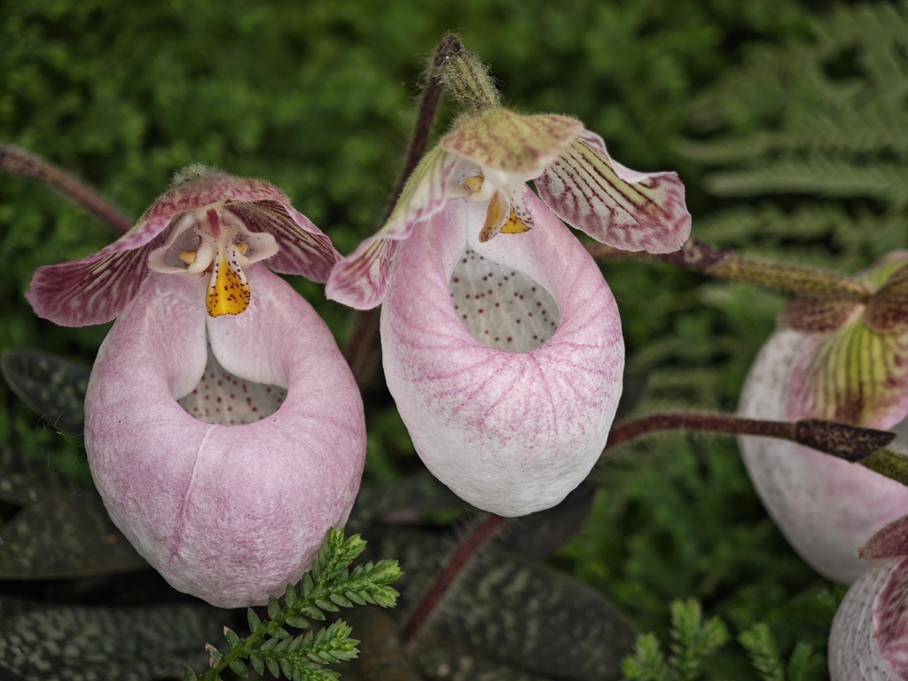 パフィオペディルムをはじめ、ラン展や園芸店でも人気が高く、「スリッパ蘭」として親しまれているグループでもあります。