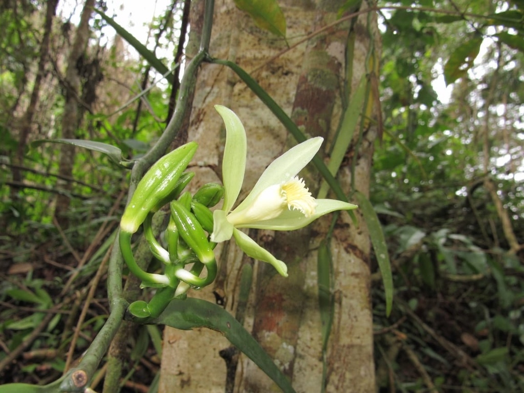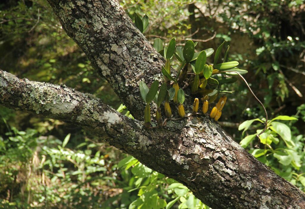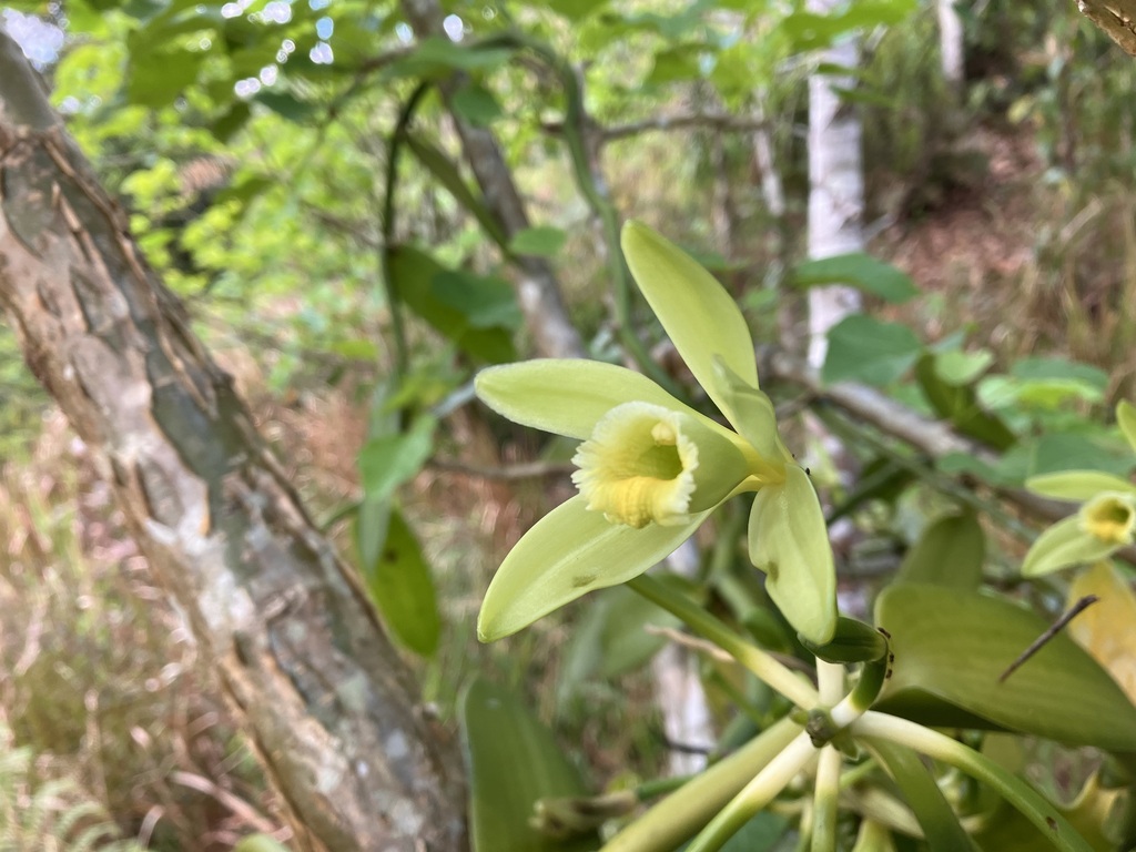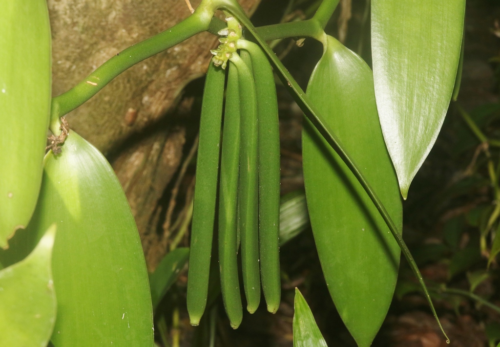 代表的なのは香料バニラの原料となる Vanilla 属で、Vanilla planifolia などの果実が、アイスクリームや菓子、香料に使われるバニラビーンズとして世界中で利用されています。バニラ亜科の分布はパン・トロピカル※で、アジア・オーストラリア・アメリカにまたがっており、花や葉の形態、生活型がモザイク状に多様化していることから、「ラン科の中での進化の試行錯誤」を示すグループとしても注目されています。
